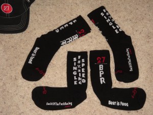Team socks are… well I have 60 pairs so I’ll be wearing them to work, to bed, to the shower, to the beach, to the ski slops, to the moon (hopefully), to Mars (not likely), to a UFO (next abduction, for sure) and to my funeral – in 60+ years. Want a pair? Well, there is at least 10 criteria listed above that must be met before these slang laced cotton bad boys are handed over. Then again, if you offer Tedd or Tim a beer, I bet they will trade off some inventory for a few cold suds.