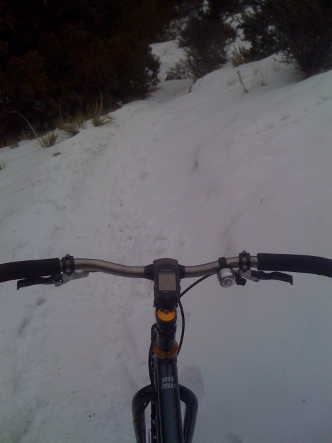 And I just had to take a picture of the wicked mountain mustache bars. The best design in the world of single speed mountain biking. Actually. I thought I was dead meat during this ride. My feet got wet early on, then froze. Not like ‘Mommy my feat are frozen’, more think ‘holy s*^t amputation is a possibility’. My feet were so cold that I wiggled my toes non stop for ~ 2 hours to keep the blood flowing. Didn’t feel a thing. When I got home I realized that I had major blisters on my toes – and a few sores where the blisters exploded and turned into holes in the skin. Never knew it due to the ‘frozen’ feet.
