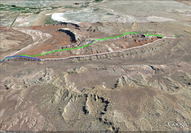 Tim and I spent the last Thursday – Saturday turning the cranks in the Albuquerque foothills. (I will post the details later.) Tim got bored. So Tim had the brilliant idea of riding at White Mesa today. Great idea. Below is the Google Earth plot of our ride.