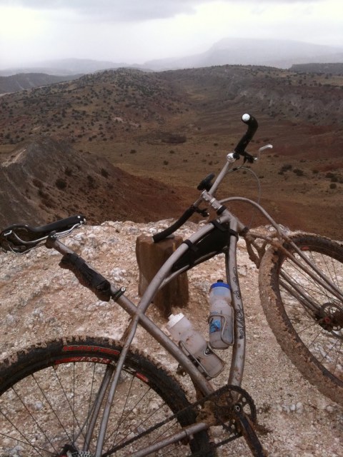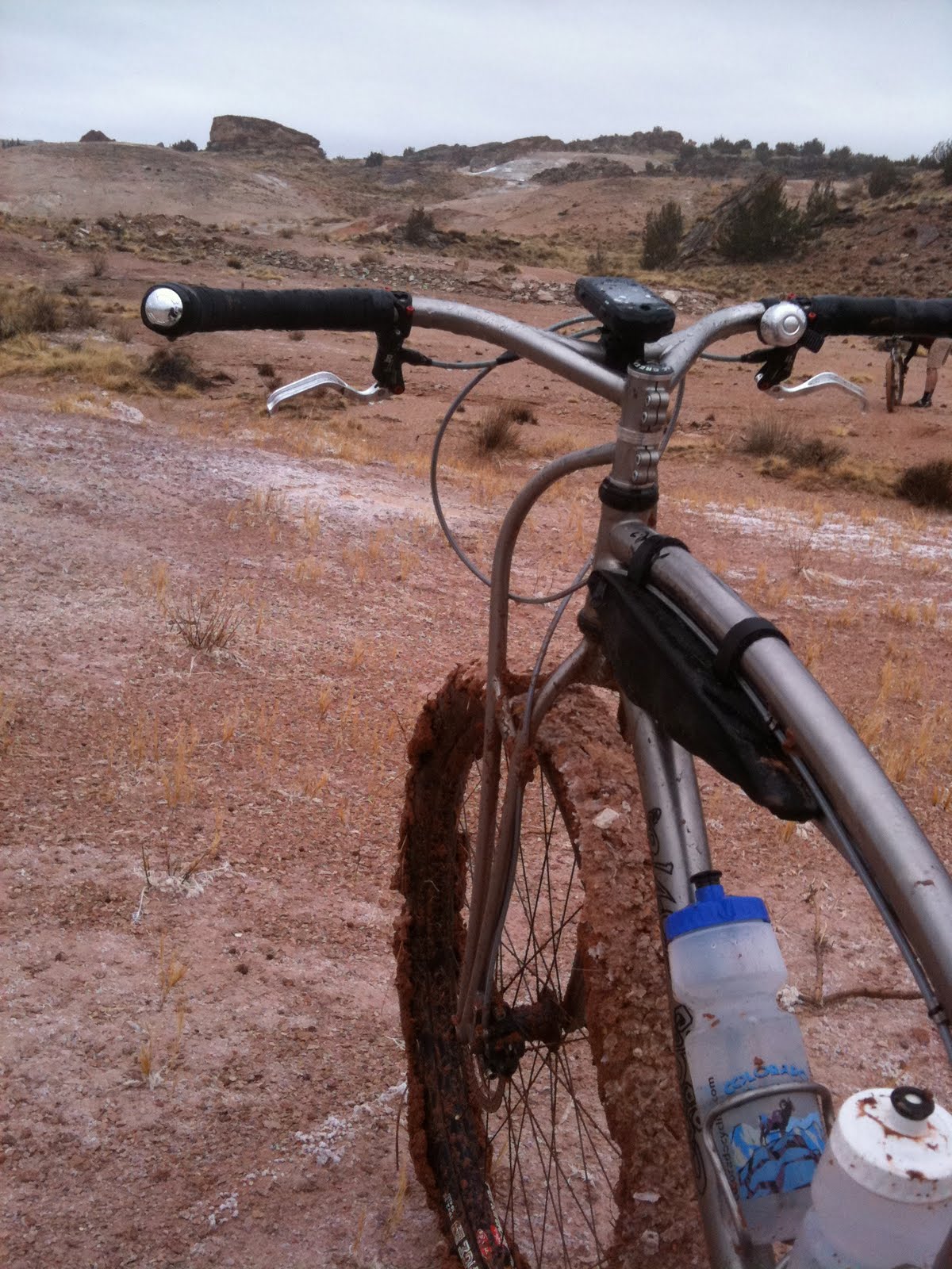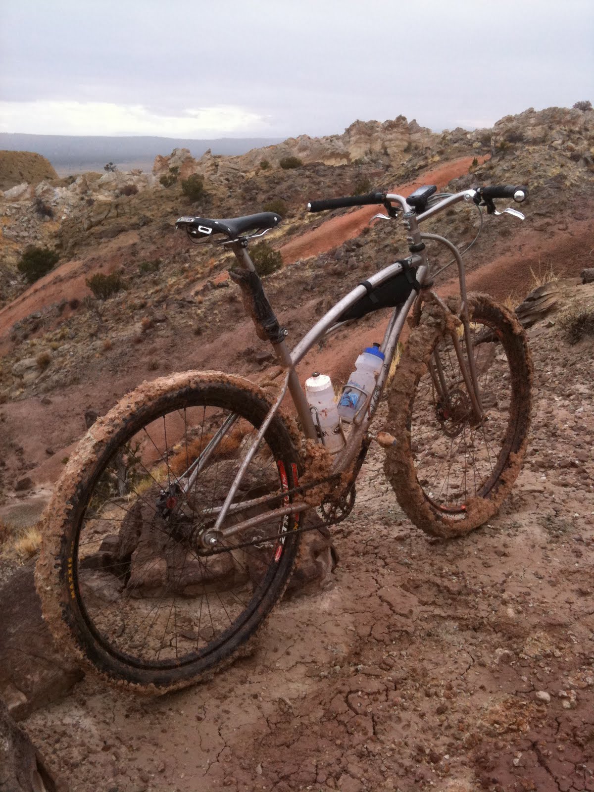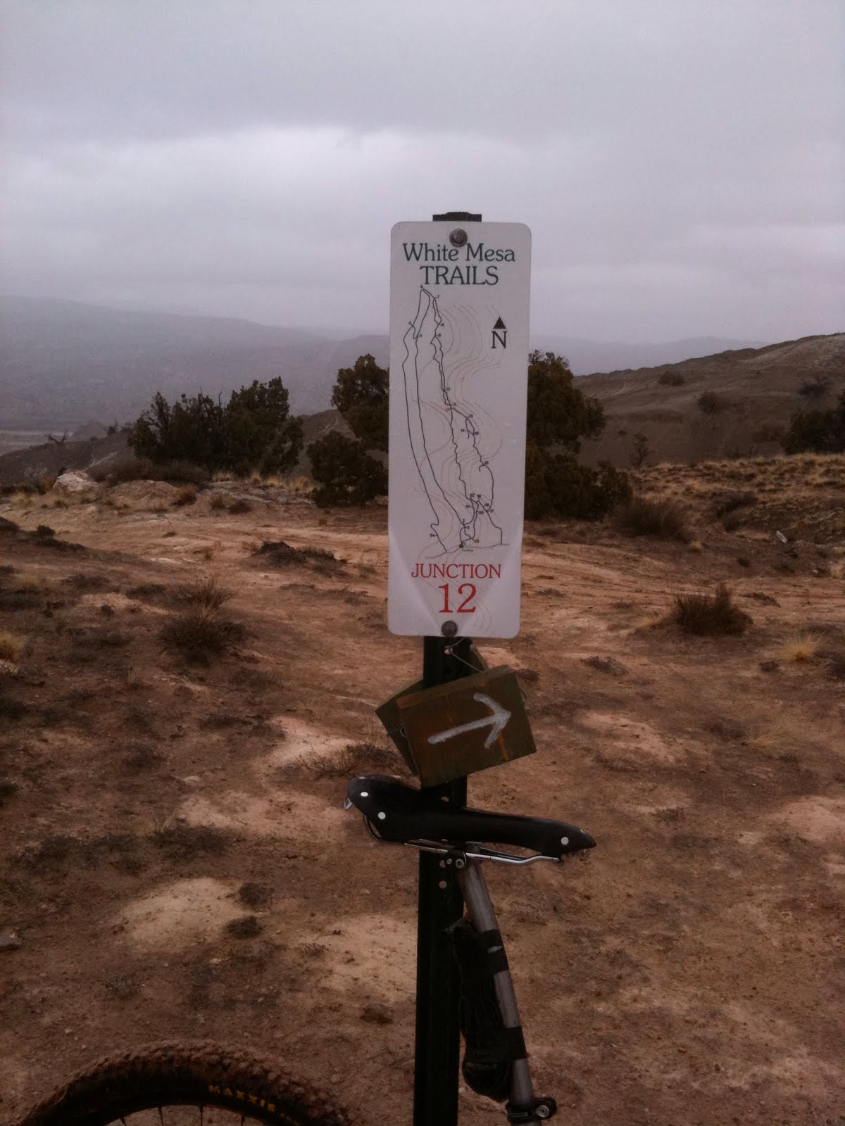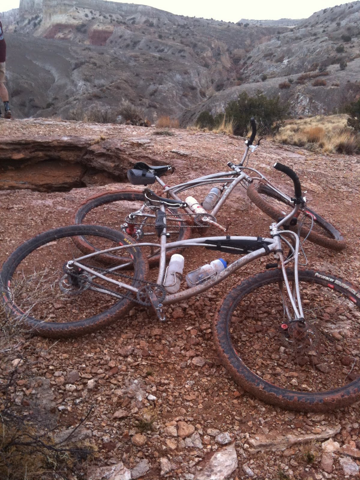 We arrived at the White Mesa parking lot jacked up on caffeine and full of green chile. Ouch! Then we quickly realized that it was still raining, raining hard – so we waited. Out of the blue Tim decided to go for it. What? Did the Guns N’ Roses get to him? Yeah, the same song over and over, Guns n’ Roses / Coma, will break down even the toughest dudes out there – except for me, I train for this mental torture.