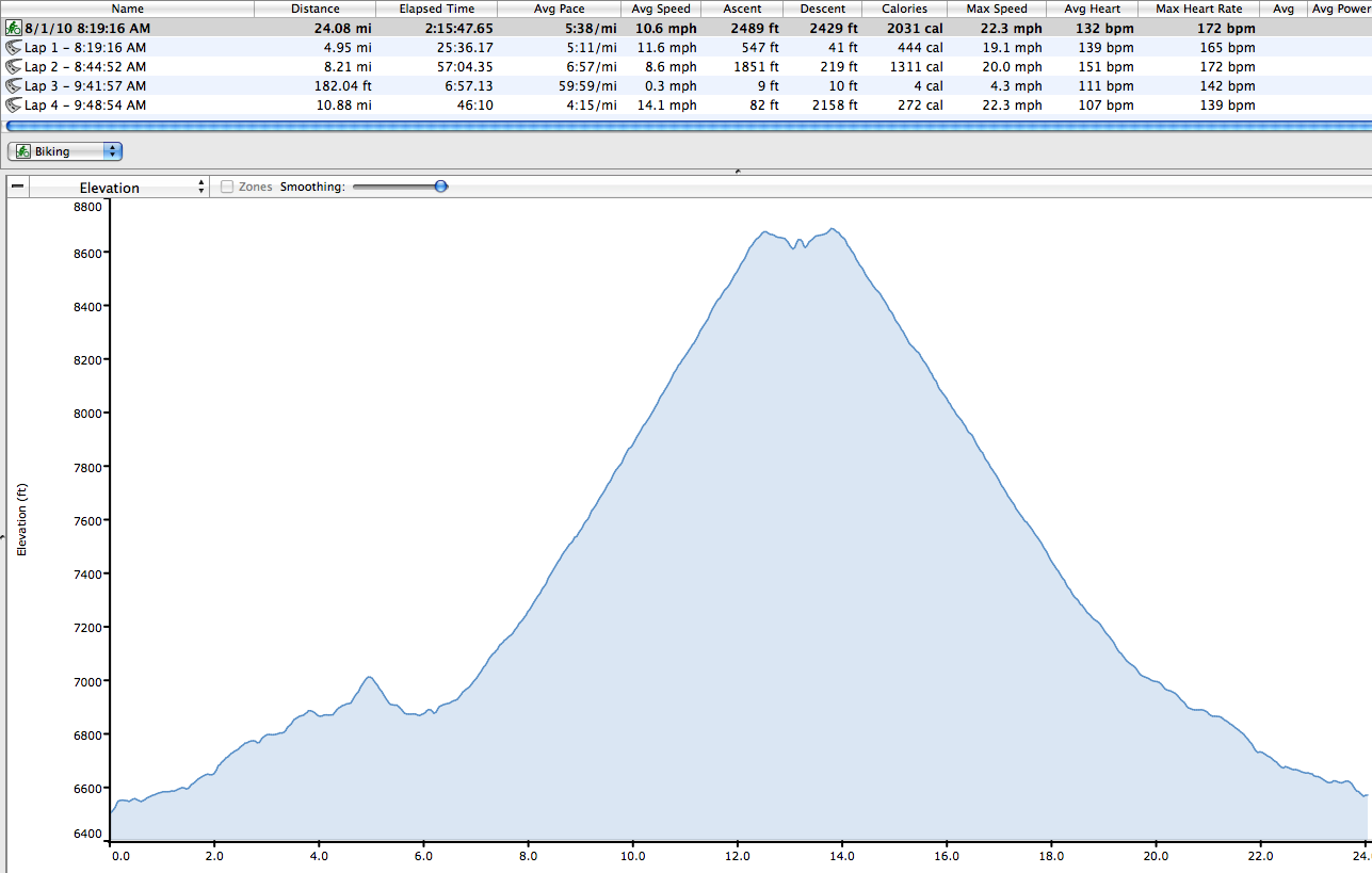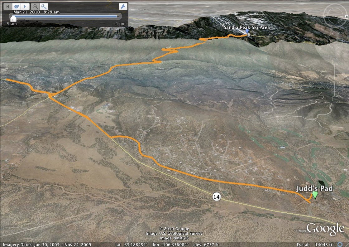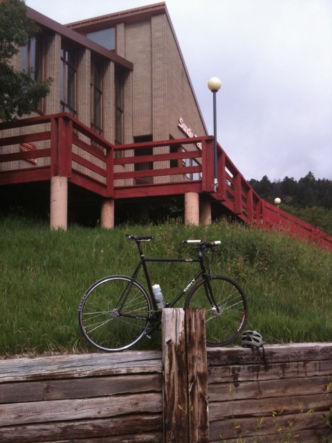 Anyway, today I broke out the fixed geared Surly and went for a ride. My expectations were – well – I had no expections. I just wanted to get out of the house and get the concrete out of my legs. I’m a bit sore from the B.P.R. High Altitude Challenge, I need a ‘cool down’ ride two days after the event, after the victory. I headed south on N14 for a few miles (Yeah, South on North 14) then I circled back and turned up Sandia Crest. I was only going to put in a few miles. But there were ‘geared’ dudes and dudettes on the road, so I felt obligated to ‘fly right on by‘ as Maverick would say. I made it up to Sandia Peak Ski Area, not bad for the 44 x 18 setup. I’ll go all the way to the top next weekend, maybe.