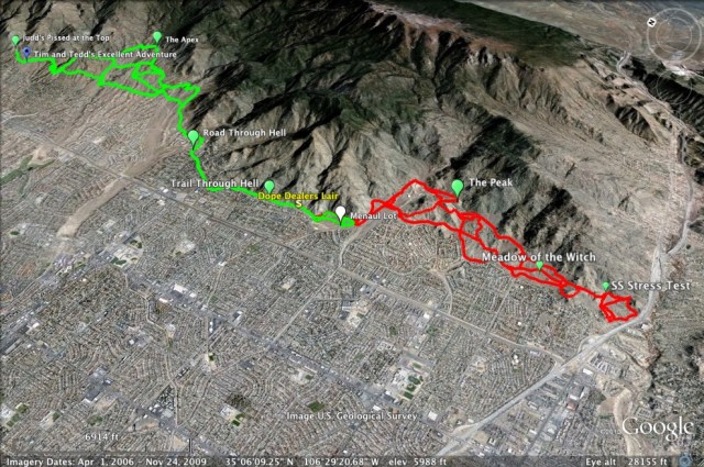 Well, I ran out of excuses last week. Training for 24 Hours of Old Pueblo officially started a few days ago. The weekend totals: 92.55 miles, 12817 vertical, 11 hrs of bike time. I put in a quick 3 miles on Thurs, 15+ on Friday, 31 on Sat and 43+ on Sun. Not bad.