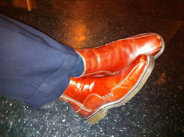 - I should’ve bought those plaid shoes. Yeah the plaid shoes at the shop where Dan, The Crew Chief, was eyeing the alligator ankle boots.