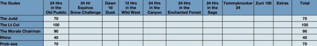 - Mad Rhino: “I wish the porta-johns were closer, then again, I’m racking up mucho miles thanks to this flu, if you know what I mean” Award. 4 laps – but more like 10. 40 Points