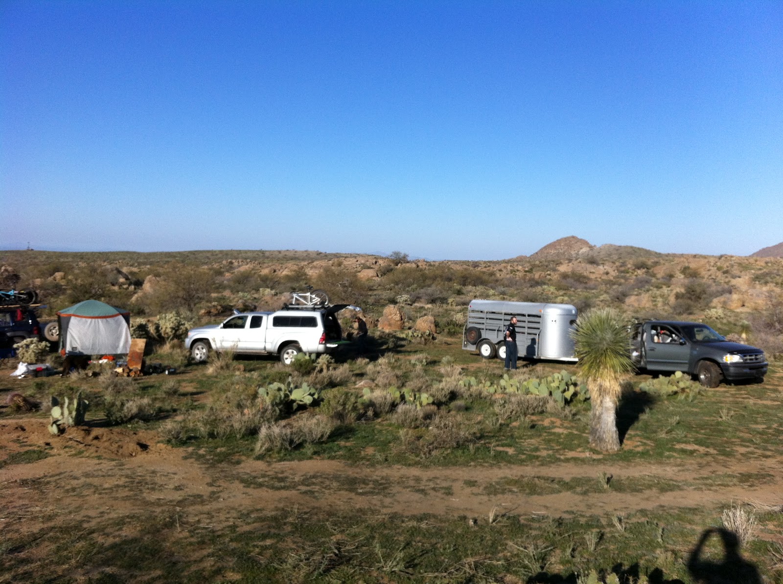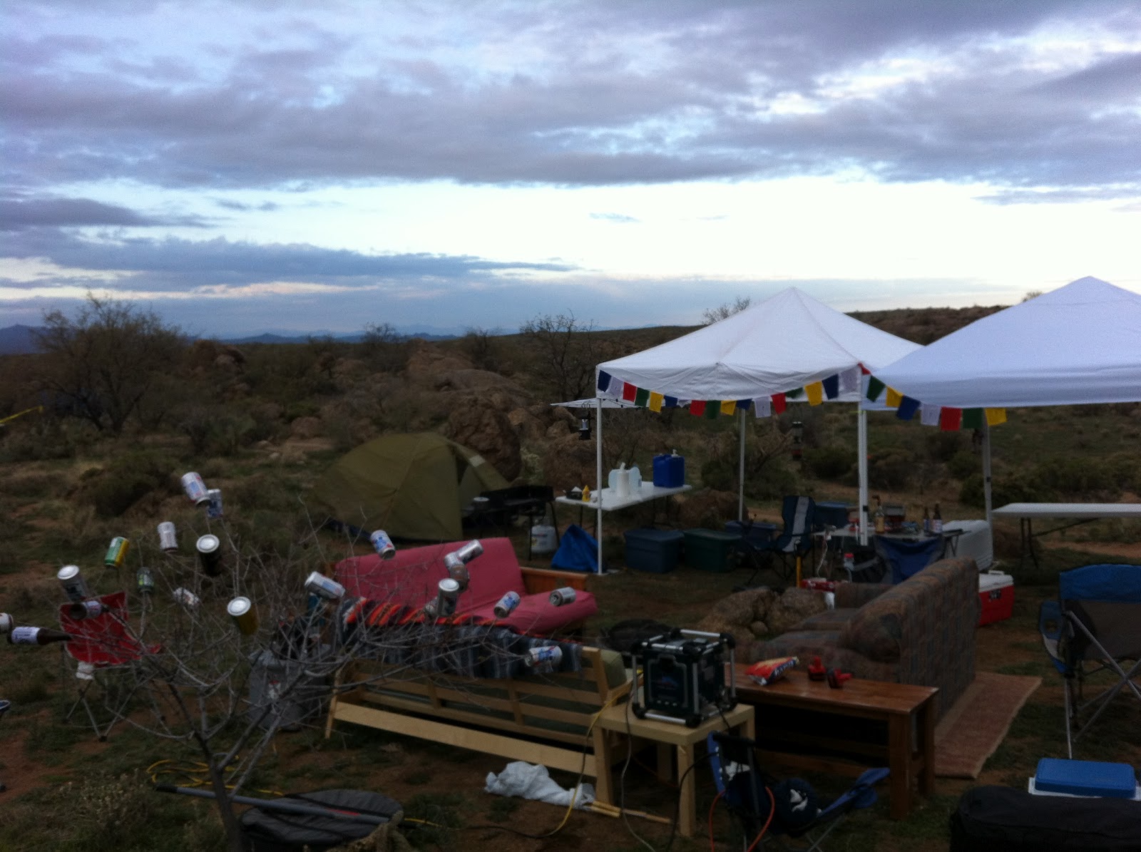 The BPR Compound at 24 Hours in the Old Pueblo was All Time! Three couches, stereo, coffee table, end table, living room carpet, fireplace, disco ball, lava lamp, a couple spare bedrooms and an outhouse with an awesome view.