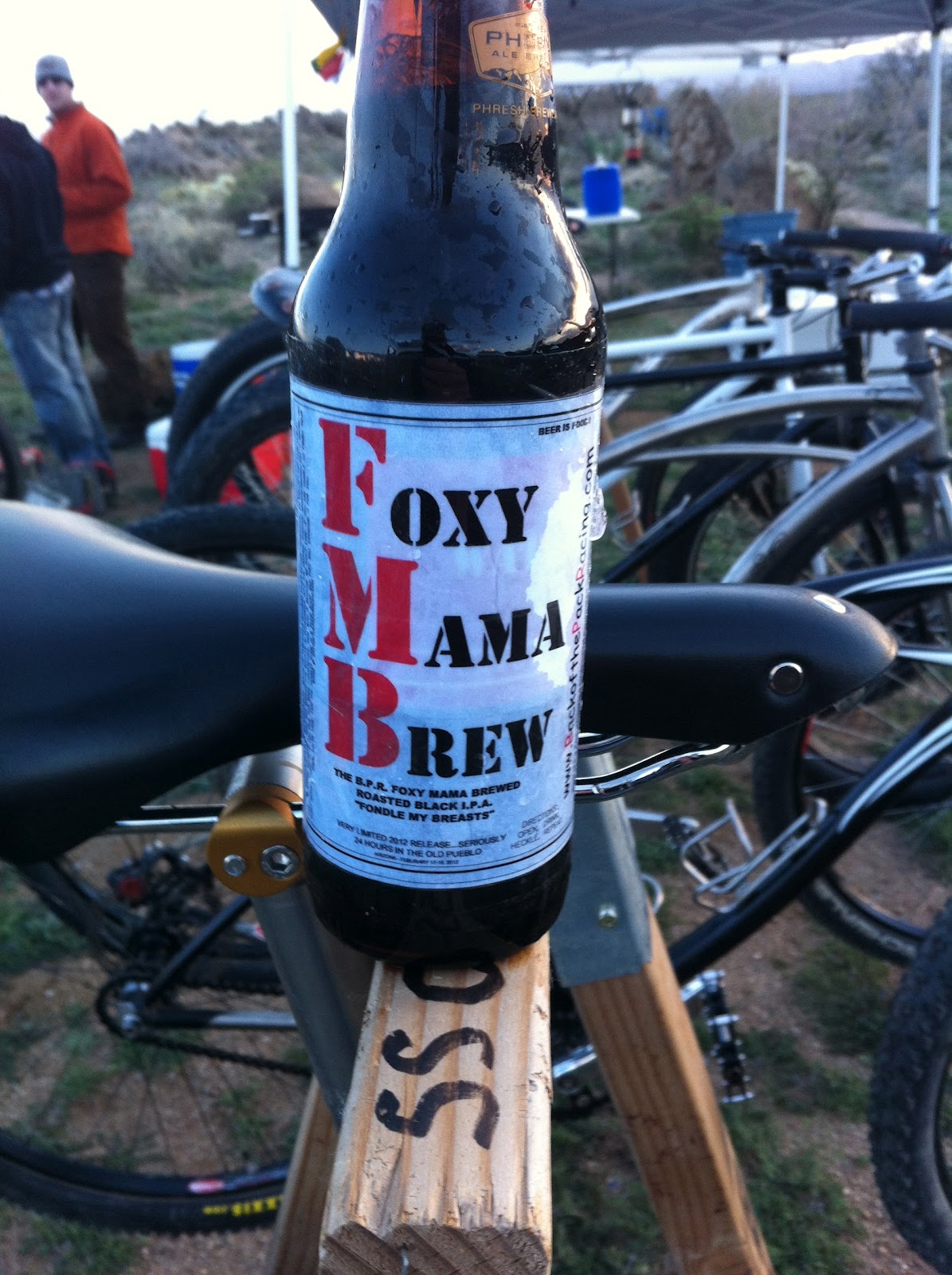 Anyway, at the start of the last lap of Old Pueblo the DrunkCyclist Gorilla cornered The Morale Chairman, and ‘offered’ up a bottle of Wild Turkey. (Yep, payback’s a bitch.) In classic Morale Chairman fashion (as he really isn’t an athlete) The Morale Chairman tipped the bottle back, way back. AND paid the big price by burping up Wild Turkey for the duration of the last lap.