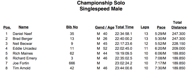 - Duece: probably 2 laps. We lost count. He lost count. But that doesn’t matter. The dude showed up at 24HITEF to dominate the FatBike category but was placed in the SS Championship category. This issue freak’d the dude out. He collapsed under the pressure and decided to take it easy, back of the pack style