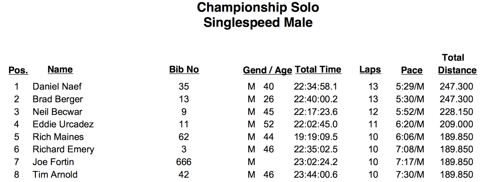 - Mad Rhino: something like 6 laps. He had ‘issues’ around midnight. We call these issues The Demons. But Mad Rhino calls the ‘issues’ just ‘issues’. More on that some other day.