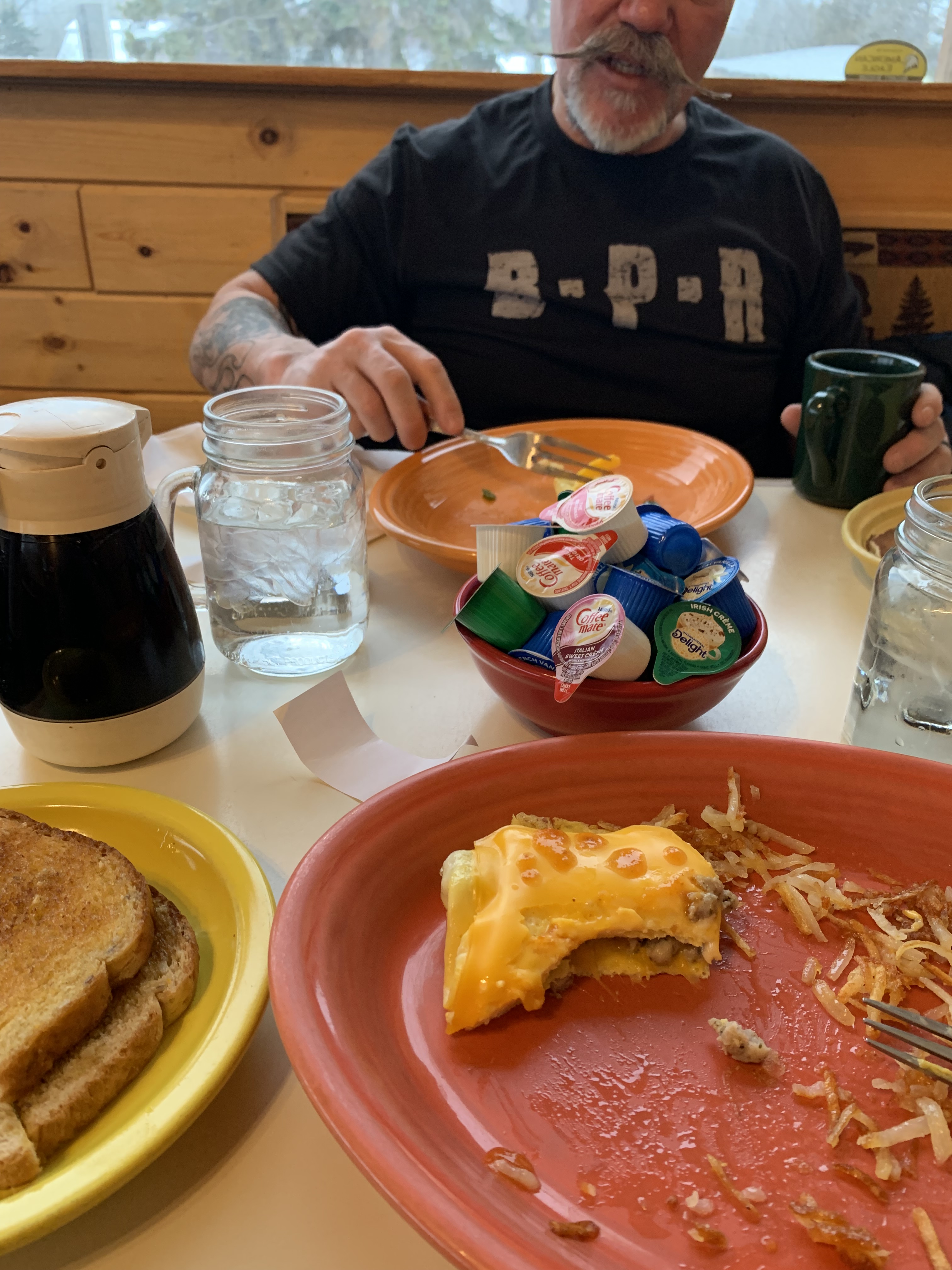 The Library, a new Library that dishes out awesome food, is the place to be. You know. The Moose was The BPR HangOut. But…The Moose now has the best dollar sized omelettes, if you’re into an $11, dollar sized omelette. That’s Eleven Dollar, Dollar Sized Omelette. Or $11, $1 sized Omelette. (We tend to like $11, eleven dollar sized omelettes. If you understand.) So let’s just visualize Racer Food and think about what $11 should ‘get’ you.